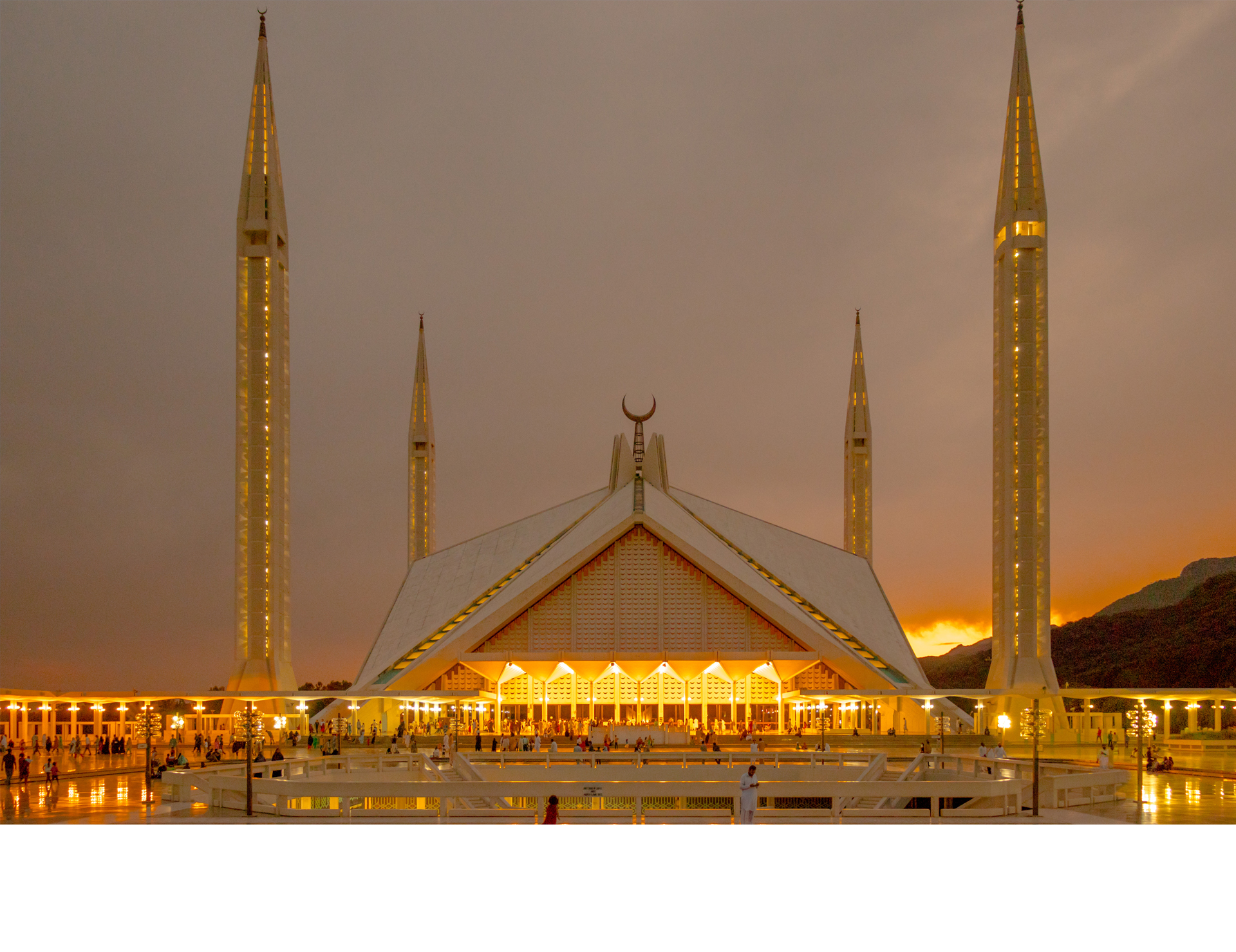 One of the most urbanized and cosmopolitan cities of Pakistan is the capital city, Islamabad. Build by design in the 60’s to take over the role as capital from Karachi, it is one of the most remarkable places in Pakistan as it took the experience of modern city planning as well as the favourable climatic conditions under consideration. Due to its establishment as the capital of Pakistan it quickly became a political and cultural hub in Pakistan though it never reached to the buzzing life of Karachi or Lahore. However, today it is considered one of the most liveable cities in Pakistan which also is reflected by its quiet- and calmness as well as its green appearance. It is home to over 1 Million people today that are predominantly employed within the federal government, international institutions and organisations as well as businesses. While the city is busy at day, it is remarkably quite at night as people live in the twin city Rawalpindi. Another buzzing hub in the area. Islamabad is also home to multiple diplomatic missions, the diplomatic enclave as well as the parliament of Pakistan playing an important role in the development of Pakistan’s beautiful north. Islamabad is a unique blend of incredible infrastructure and picturesque natural wonders. The breath-taking mountains surrounding the city are a treat for the eyes. The luscious green scenery makes the city unforgettable. The city has wide streets adorned by tall green trees. It is divided in various zones and sectors thus making it both stunning and conveniently accessible. The location of the city makes it the perfect base for people travelling further up north. Moreover, the Margalla Hills are right in the backyard of the city. The biggest mosque of the country is the Faysal Mosque. The mosque is at the foothills of the Margalla hills, right in the heart of the city. It has an enthralling beauty. Against the backdrop of scenic mountains it has white pillars and expansive open spaces. The mosque can accommodate upto 300,000 worshippers at a time and is a perfect reminder to the cultural and diplomatic importance religion is playing in Pakistan. Today it is home to a wide flock of people from all over the planet embracing their life in one of the most beautiful capitals there is.